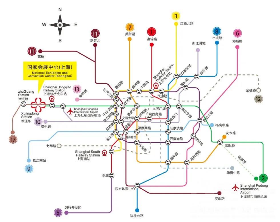 3.乘坐地铁17号线到“诸光路站”下,该站位于展馆北广场西北侧。